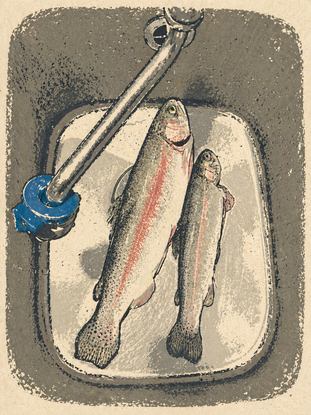 くん、のあとに、これまでとは桁の違う引きが手元を襲った。ぐぐぐぐっと竿が深く曲がり、糸が出ていく。半日キャストを繰り返したナイロンなら切れていただろう(何度かプールの縁石を超えてキャストしてしまっていたのだ)。寄せてきた魚は、ぷっくりと太った、見るからに旨そうな彩サーモンだった。